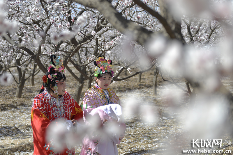 3月23日,演员在巨鹿县元泽路杏花园内表演节目。