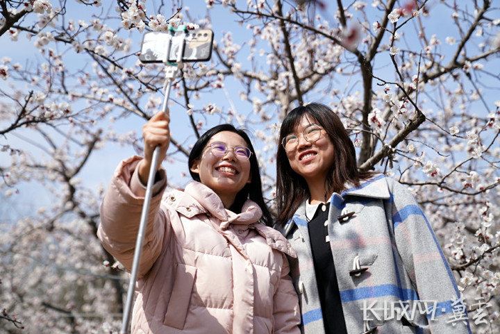 游客李珊和朋友是第一次来沙道杏园赏花,她们觉得这里的杏花特别漂亮,经过一冬天的沉闷,杏林下的青草映衬着花海,令人心旷神怡。李珊对记者说:“现在因为疫情,也不敢去太远的地方,这里离家近,花开得也好,回去后我会发朋友圈,推荐朋友也来这儿赏花。”