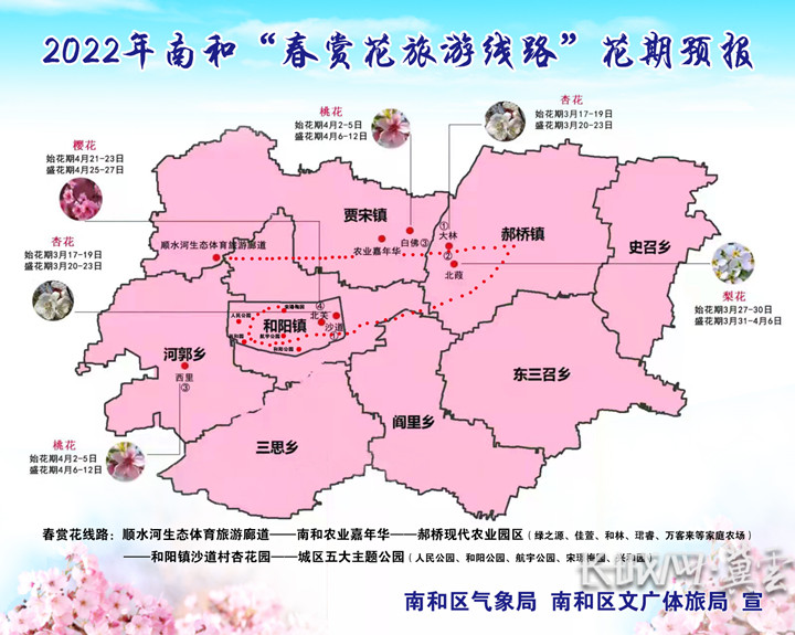 2022年南和“春赏花旅游线路”花期预报。图片来自 邢台市南和区气象局