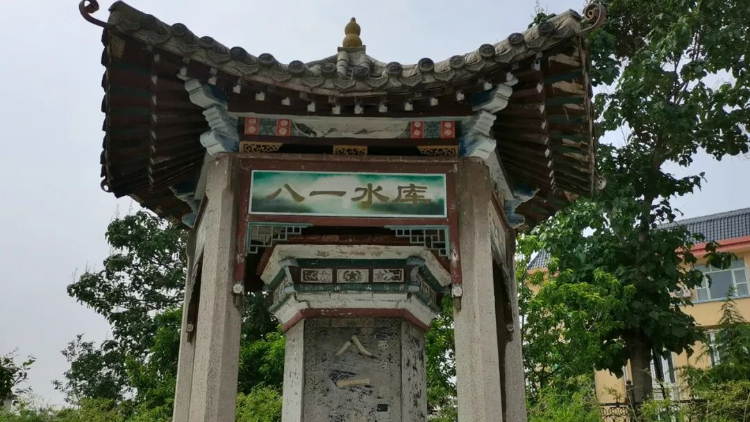 水库管理所前有个六角亭,亭里竖有一座六棱的《八一水库纪念碑》。