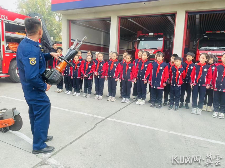 消防员为学生讲解消防救援知识。通讯员 王丽华 供图