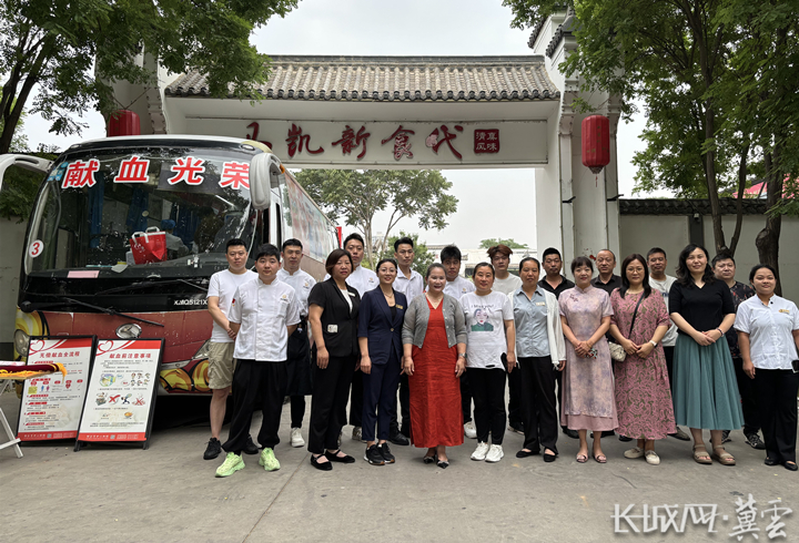 吴红梅(前面左四)在今年“世界献血者日”,组织员工参加献血活动。
