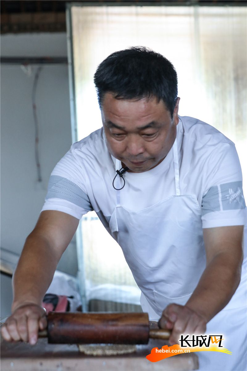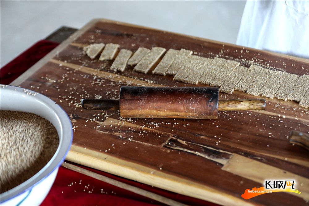 王同现和他制作的芝麻糖。 长城网记者 刘潇 刘澜澜 摄