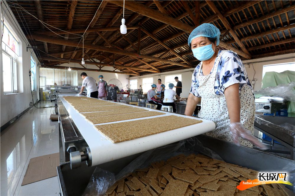 在芝麻糖厂打工的贫困户。 长城网记者 刘潇 刘澜澜 摄