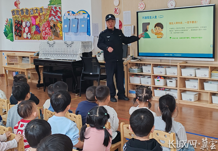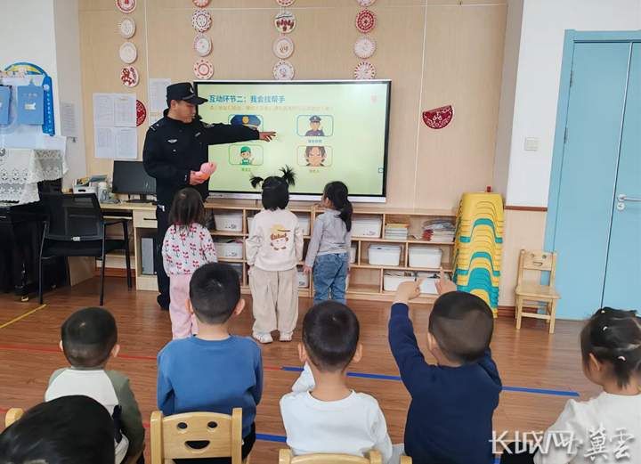 民警教幼儿园小朋友学习自我保护知识。通讯员 刘瑞娇 供图